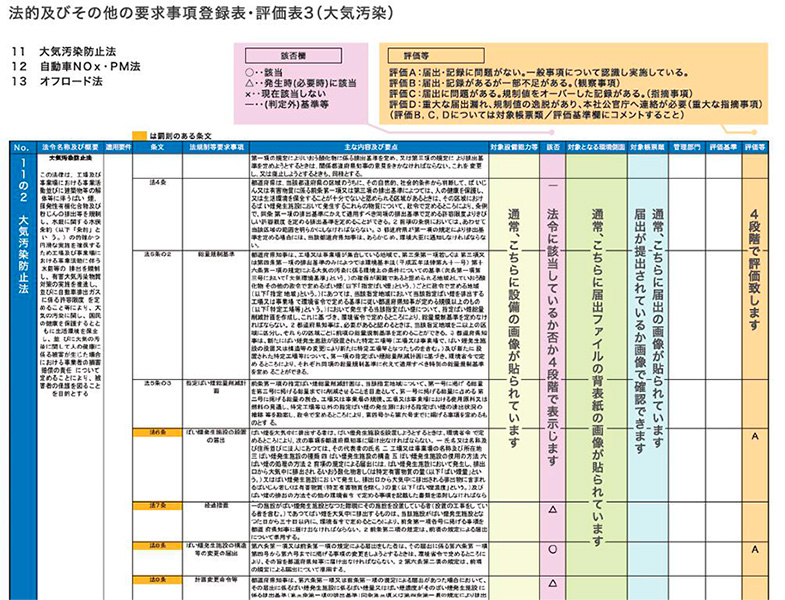 大気汚染防止法や水質汚濁防止法、土壌汚染対策法等の届出や測定記録を確認し、法令遵守されているかを調べます。